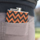 El Hip y el Purpurina de moda Chevron Look Flask. Este frágil matraz presenta un patrón de zag de chevron zig encima de un fondo de purpurina naranja de arte digital.