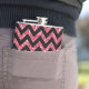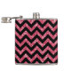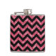 El Hip y el Purpurina de moda Chevron Look Flask. Este frágil matraz presenta un patrón de zag de chevron zig encima de un fondo de arte digital rosado purpurina.