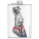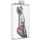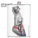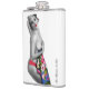 Nostálgico Chica de Pinup Hip Flask, con obras originales de pinup © "Miss Cherrie Au Lait - Bath". Fondo blanco.