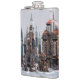 Representación digital 3D de una ciudad futurista de ciencia ficción sobre un fondo de cielo gris