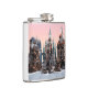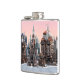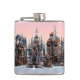 Representación digital 3D de una ciudad futurista de ciencia ficción sobre un fondo de cielo rosa