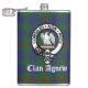 Insignia de Escudo agnew de clan escocés sobre fondo tartán