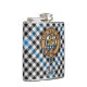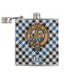 Clan Haig crest badge surrounded by a strap and buckle over check tartan. Custom text.