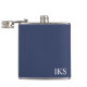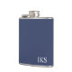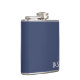 Una petaca moderna y elegante con fondo azul y tipografía blanca sencilla perfecta para añadir tus iniciales de monograma. El regalo perfecto y considerado para alguien.