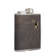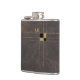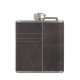 Se utilizó un escaneo digital de cuero de vaca real en la creación de este diseño. El cosido decorativo falso se coloca estratégicamente para formar un diseño geométrico que enmarca su monograma de tres letras. El monograma está impreso en tipografía dorada. Excelente frasco para llevar en el campo de golf. Este frasco será un gran regalo para su padrino y/o pajes. Este diseño clásico es adecuado para el hombre con gusto exigente.