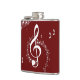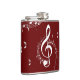 G Clef entre notas de música en un rojo profundo. El fondo rojo oscuro hace que aparezcan las notas blancas brillantes. Diseño de música blanca y marrón,