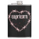 Haga una declaración astrológica audaz con este matraz de zodiaco de Capricornio. Con letras góticas, un corazón de alambre de púas rojo y la constelación de Capricornio sobre un elegante fondo negro, este diseño combina la mística celestial con la actitud de roca punk. Perfecto como un regalo único para los amantes de la astrología que no tienen miedo de mostrar su lado más suave envuelto en picos.