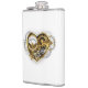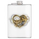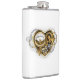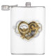 Corazón mecánico, volumétrico, de vapor punk con manómetro de presión, acero y engranajes dorados sobre fondo blanco. Estilo Steampunk.