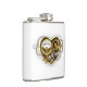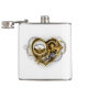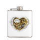 Corazón mecánico, volumétrico, de vapor punk con manómetro de presión, acero y engranajes dorados sobre fondo blanco. Estilo Steampunk.