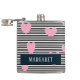 Añade tu nombre en este patrón de corazones rosados y rayas blancas y negras.