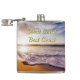 ¡Viva tu vida de costa oeste con este gran matraz de cadera! ¡Las olas chocan en la playa debajo del texto del personalizable!