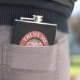 Créeme, soy un carnicero escrito dentro de un círculo con un filete de hueso.