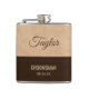 Nuestra botella de frasco de cadera fría es una gran idea de regalo para tu novio. Puedes poner a este pequeño en el bolsillo interior de tu chaqueta de esmoquín y estarás listo para un trago rápido cuando y donde lo necesites. El cuero de imitación crema y marrón es más duradero que el cuero real. La botella se verá como nueva por mucho tiempo. El tipo de letra que contrasta asegura que el texto personalizado se vea nítido y sofisticado.