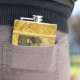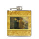 Petaca Cristo golpeando a una puerta de madera erosionada