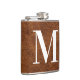 Petaca Cuero Marrón Falso Monograma Moderno