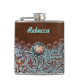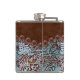 Frasco para dama de honor de boda country occidental turquesa marrón rústico. Accesorios de moda de cuero occidental antiguos. Accesorios de moda de vaquero del suroeste.