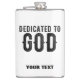 PETACA DEDICADO A DIOS PERSONALIZABLE GUAY TEXTO NEGRO