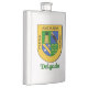 El apellido hispano Delgado heráldico escudo de bebida. El texto debajo del escudo está en un tipo de letra de estilo clásico para coincidir con los colores del escudo. ¿Tu nombre es español? Podemos investigar su nombre y devolverle un matraz con su escudo familiar histórico aquí en Zazzle! Sólo pregúntennos. Excelente historia heráldica para enviar como regalo o para conservar y usar para mostrar su orgullo familiar.