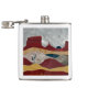 Un paisaje abstracto con colores y texturas únicos que muestran una escena desértica con un sol azul que se eleva y un cactus en tonos rojos, grises, beige y azul.