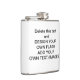 Tamaño: Frasco envuelto vinilo, 6 onzas. Modifique esto para requisitos particulares 6 onzas. Frasco líquido del acero inoxidable de Courage™ para un accesorio de la diversión y de la cadera en camino. Su texto, fotos o diseños se imprimen profesionalmente en color vibrante en el vinilo de alta calidad y se envuelven permanentemente alrededor del frasco. ¡El frasco de Courage™ del líquido es un gran regalo para los bodas, los cumpleaños, y los acontecimientos especiales! Seis onzas (6 onzas.) Frasco del acero inoxidable con la tapa atada del top del tornillo. Dimensiones: 3,75 "" l "" 4,5 w de x x 1 diseños del "" D. impresos en el vinilo de alta calidad y envueltos permanentemente alrededor del frasco. Hecho a mano en lavado a mano de los E.E.U.U. con agua caliente.