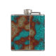 Una representación artística de un diseño de mapa mineral. Colores de naranja quemado y turquesa en tonos variados. Este elegante frasco hip sería un gran regalo para un mineralogista, cualquiera asociado con la industria minera.