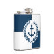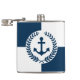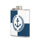 Diseño de temática náutica con decoración de coronas de ancla y laurel sobre fondo geométrico azul y blanco