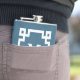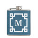 Diseño monograma con decoración de borde clave griega sobre fondo azul grueso