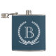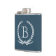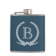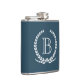 Diseño monograma con decoración de plumas de laurel sobre fondo azul