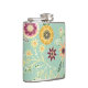 Este moderno diseño de ilustracion floral de arte folclórico nórdico le da un toque de tradición a una decoración especial, con un patrón de flores y hojas elegantes, de color rosa, verde menta, verde bosque, azul cielo, naranja, melocotón, amarillo y gris, trazos de contorno dorado sin fisuras, sobre un sencillo fondo de color verde menta y agua.