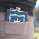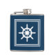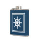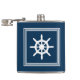 Diseño de temática náutica con decoración de ruedas de vela en cuadrados rayados sobre fondo azul