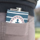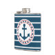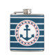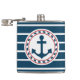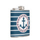 Diseño náutico con decoración de ancla en forma redonda sobre fondo rayado azul y blanco