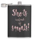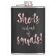 El matraz personalizado con letra de guión "tiros en lugar de escudos" puede ser un gran regalo divertido para una fiesta de soltera