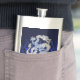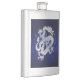 Un applique del dragón en cromo como el estilo de plata en una impresión llameante azul del fondo de la fibra de carbono a llevar o a compartir en todas las ocasiones festivas.