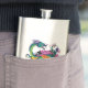 Un dragón de agua verde y púrpura chino con un pez koi naranja, flores de loto. flores de cerezo todo en agua como telón de fondo azul