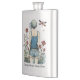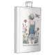 A serene illustration of a woman viewed from behind, standing quietly among blooming red roses.