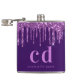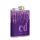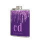 Un fondo morado intenso con elegantes gotas de purpurina morada falsa, aspecto de gota de pintura. Texto de color rosa. Personaliza y añade las iniciales de tu monograma y tu nombre. Perfecto para fiestas de cumpleaños, despedidas de soltera y fiestas de bridal shower.