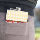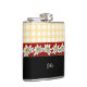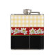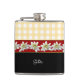 Matraz para beber bonito hecho con los colores de la bandera alemana de rojo, amarillo y negro, con un patrón de gingham amarillo y blanco a cuadros, en la mitad superior del matraz. La mitad inferior del matraz está hecha en negro sólido, con gráficos de una cinta roja de borde dorado, con flores edelweiss blancas, a través del medio. Personaliza el texto blanco, en el frente, para ti mismo o como una idea de regalo encantadora.