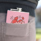 Palabra SMOOCH sobre el corazón rojo. Efecto de sonido de historietas de besación. Color de fondo personalizado. Texto personalizado.