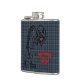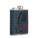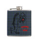 Serie divertida Un gran matraz de cadera con una divertida imagen de un tipo loco al estilo ingenuo, comiendo un corazón. El eslogan dice Aviso, muerdo el código de la imagen: eigorwib