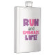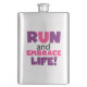 Si te gusta correr, correr 5 Ks, 10 Ks, media maratón o maratones, te encantará este colorido diseño de texto en morado y rosa que dice Correr y abrazar la vida! ¡Corre y abraza camisetas vitales, tazas, bolsas, tarjetas, pegatinas, cadenas de llaves, mousepads, estuches para iPhone, imanes y mucho más!