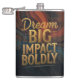 Un diseño audaz y inspirador con la frase "Dream Big Impact Bolly" en un fascinante y llamativo esquema de color. El texto se representa en una fuente dinámica y moderna, con un sentido de energía y determinación. La composición general es limpia e impactante, personas motivadoras para abrazar sus sueños y luchar por la grandeza.