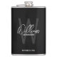 Moderno Minimalista Personalizado Monograma y Regalos de nombres Este diseño presenta el nombre del groomsman personalizado en blanco estilo de letra de escritura a mano moderno y monograma en color gris claro moderno sans serif estilo de fuente como fondo, con detalles bodas en blanco moderno estilo sans serif serif estilo de fuente, sobre fondo negro. También perfecto para el mejor hombre, padre de la novia y más.