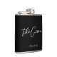 Esta petaca de novio chic y simple presenta el nombre de su novio bajo una tipografía blanca minimalista sobre negro. Personalice este regalo de boda elegante y moderno para su boda o despedida de soltero.