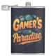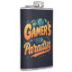 Un diseño gráfico vibrante y nostálgico que presenta el texto "Paraíso de los jugadores" en un tipo de letra pixelado que recuerda a los videojuegos clásicos. El diseño incorpora elementos de aventura y exploración, con una paleta de colores que evoca emoción y nostalgia. La composición general es dinámica e invitante, atrayendo a jugadores de todas las edades.