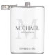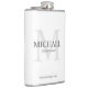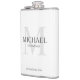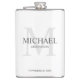 Añada un toque personal a su boda con un matraz de groomsmen personalizado. Este matraz presenta el nombre personalizado del groomsman con el título y la fecha boda en gris y monograma en gris claro como fondo, en estilo clásico serif, sobre fondo blanco. También perfecto para el mejor hombre, padre de la novia y más.