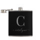 Moda Moderno y elegante guión de monograma negro plateado sobre un matraz negro de moda. Fácil de personalizar con su propio nombre y detalles. Perfecto para tu lujoso estilo de vida. Póngase en contacto con nosotros en cedarandstring@gmail.com si necesita ayuda con el diseño o productos de coincidencia.