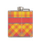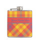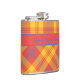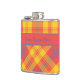 Un matraz de cadera de moda para personalizar, con un patrón de plastico en rojo brillante, amarillo y azul. Este diseño, que forma parte de la colección "Rangoli" de Posh & Painterly, se puede ajustar para que se ajuste a cualquier matraz.