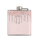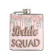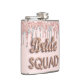 Una petaca para una despedida de soltera o una fiesta de soltera. Un ligero rosa oro, fondo rosa con elegantes destellos de rosa oro y falso plata, aspecto de pintura que gotea. Con el texto: Bride Squad escrito con una fuente estilo globo, color rosa oro.