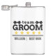 Celebre el estilo del fiesta del novio con este matraz personalizado "Team Groom", que presenta un diseño elegante con acentos de bowtie, estrellas de oro y un nombre personalizado para el mejor hombre o padrino. Perfecto para fiestas de soltero, celebraciones del día de la boda, y como un regalo memorable de honor, este matraz es a la vez elegante y práctico. ¡Un accesorio imprescindible para el escuadrón del novio!