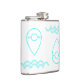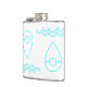 Un marcador de mapa azul con la fórmula química para el agua (H2O) escrito sobre él, sobre las ondas abstractas de semicírculo. ¡El diseño es reversible, se convierte en nubes y en una gota de lluvia!